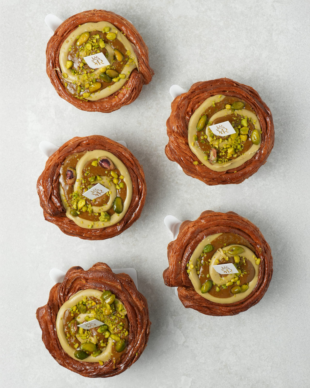 Namelaka, cremoso, praliné y granillo de pistacho.