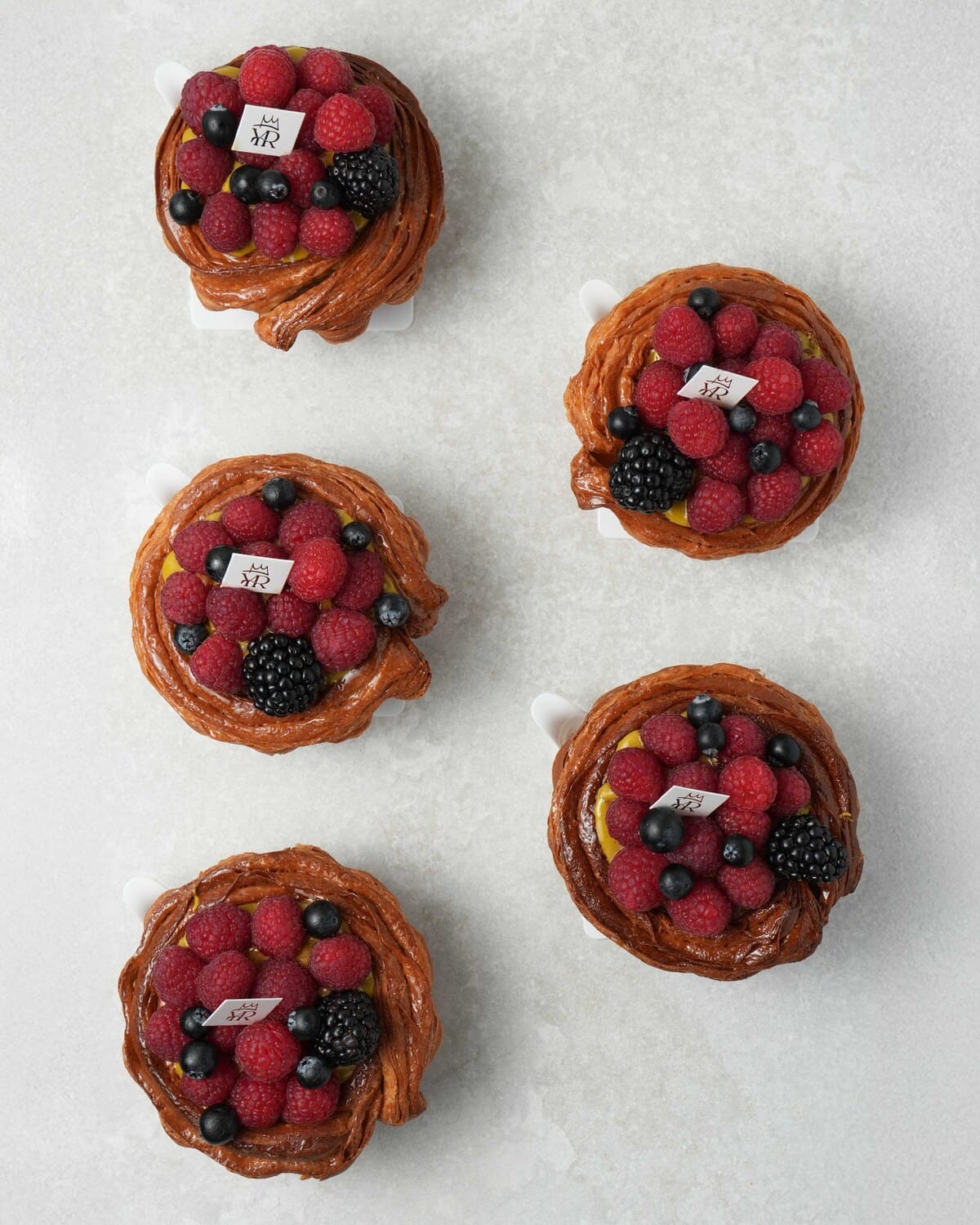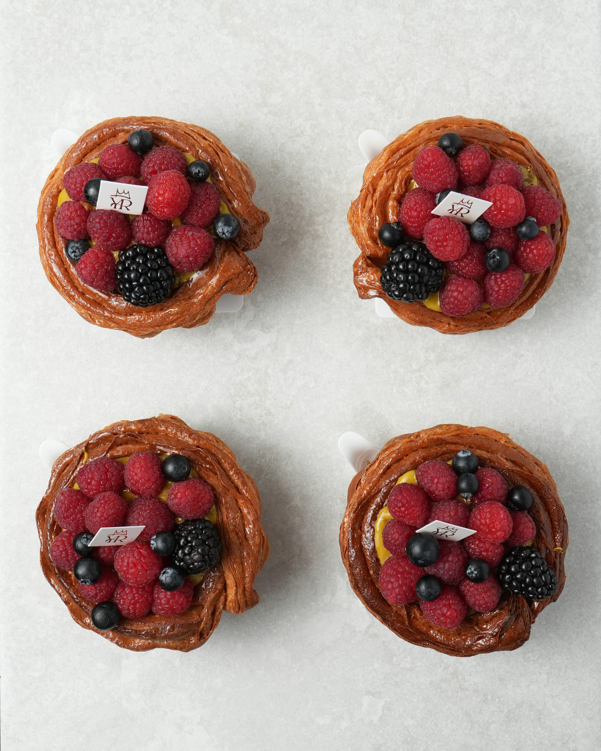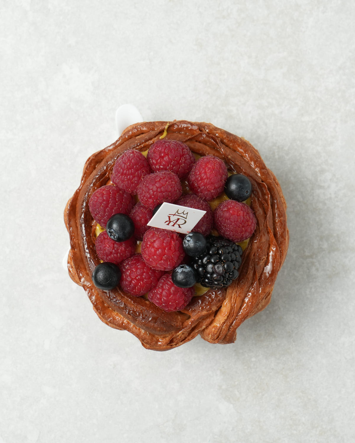 Crema de vainilla, crujiente de pistacho y frutos rojos.