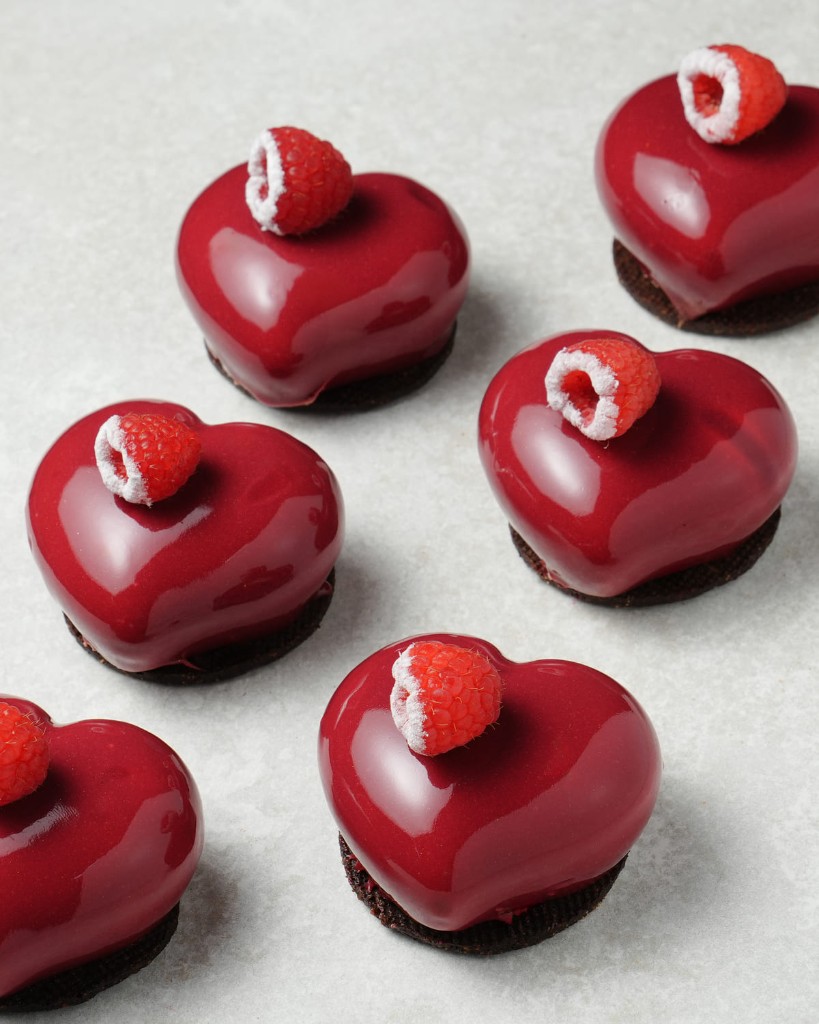Mousse chocolate, bizcocho chocolat, crujiente de Ferrero y sablé prensado de cacao.